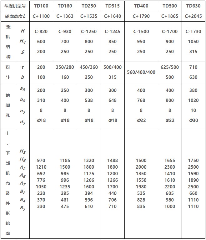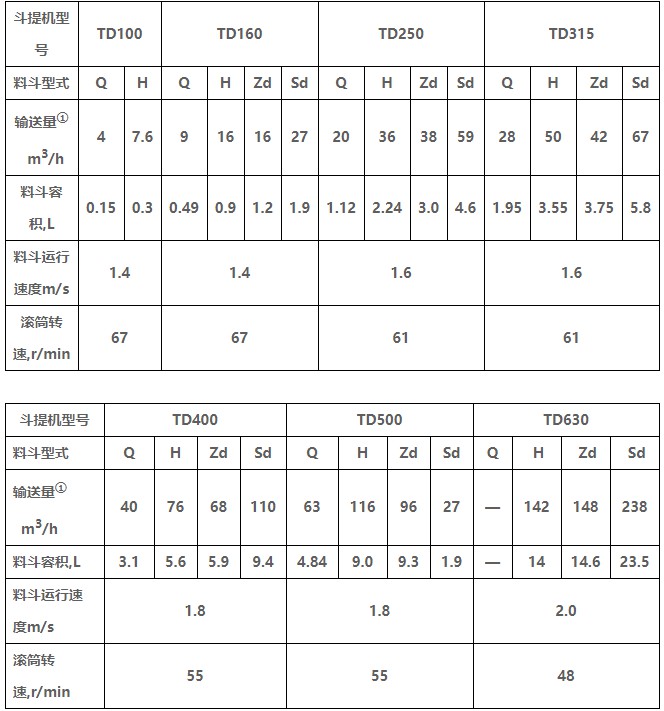TD型垂直斗式提升機(jī)由運(yùn)行部分(料斗與牽引膠帶)、帶有傳動(dòng)滾筒的上部區(qū)段、帶有拉緊滾筒的下部區(qū)段、中間機(jī)殼、驅(qū)動(dòng)裝置、逆止制動(dòng)裝置等組成,適用于向上輸送松散密度ρ<1.5t/m3粉狀、粒狀和小塊狀的無磨琢性和半磨琢性散狀物料,如煤、砂、焦末、水泥、碎礦石等。本機(jī)的特點(diǎn)為快速離心卸料:并采用橡膠輸送帶為牽引構(gòu)件,故不適于輸送大塊磨琢性及掏取阻力大的物料。被輸送物料的溫度不得超過60℃,如采用耐熱橡膠帶時(shí)溫度不超過200℃。與D型斗式提升機(jī)相比,具有輸送效率高,料斗型式多等特點(diǎn)。